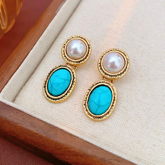 Thea™ Gold Stainless Steel Pearl Drop Earrings