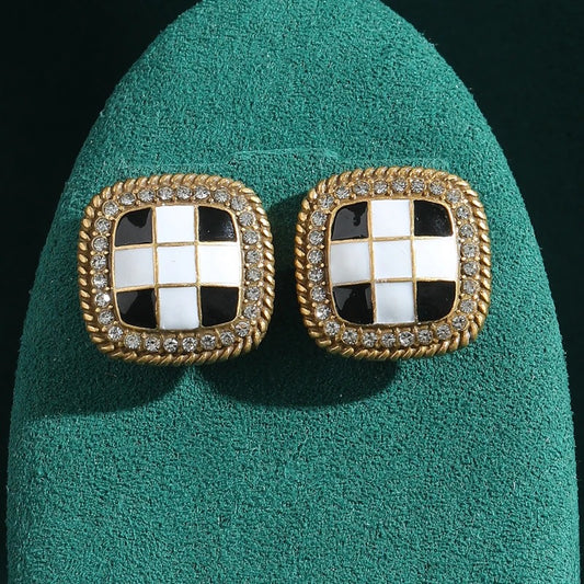 Tivrent™ Vintage Black & White Square Crystal Earrings