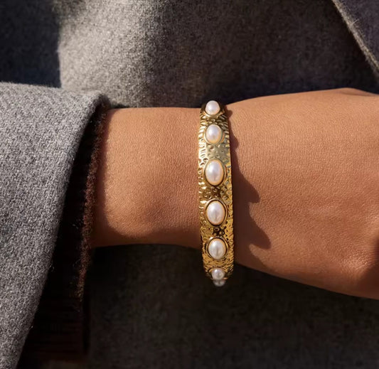Katrina™ Elegant Pearl Cuff 18K Gold Open Bangle