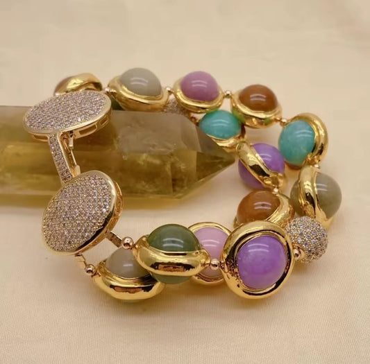Lavrentia™ Double-Strand Multicolor Jade & CZ Pearl Bracelet