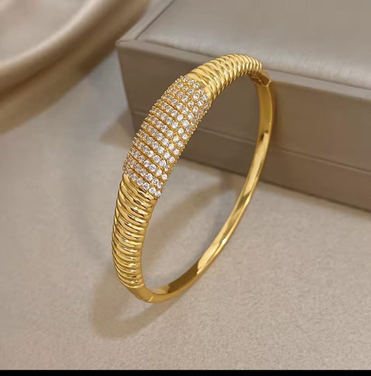 Pavéra™ Gold Plated Serpentine Cubic Zirconia Bangle