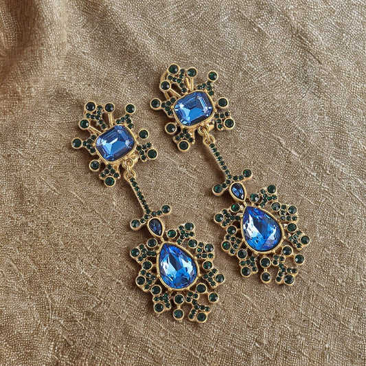 Nirevia™ – Vintage Blue Crystal Teardrop Earrings
