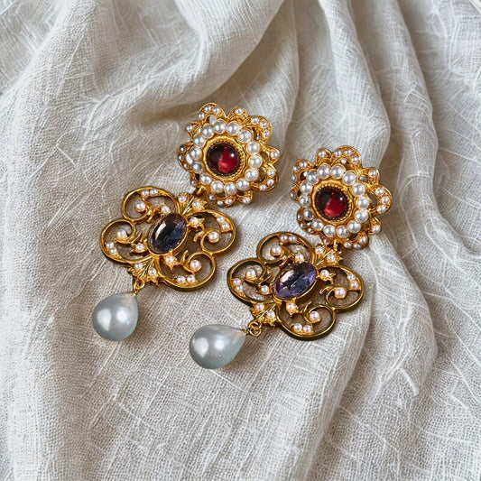 Seraphira™ Vintage Baroque Pearl & Emerald Drop Earrings