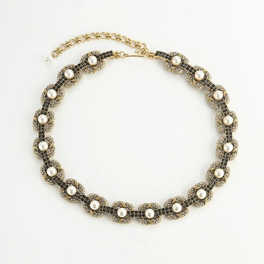 Balvent™ Vintage Pearl & Black Crystal Choker Necklace
