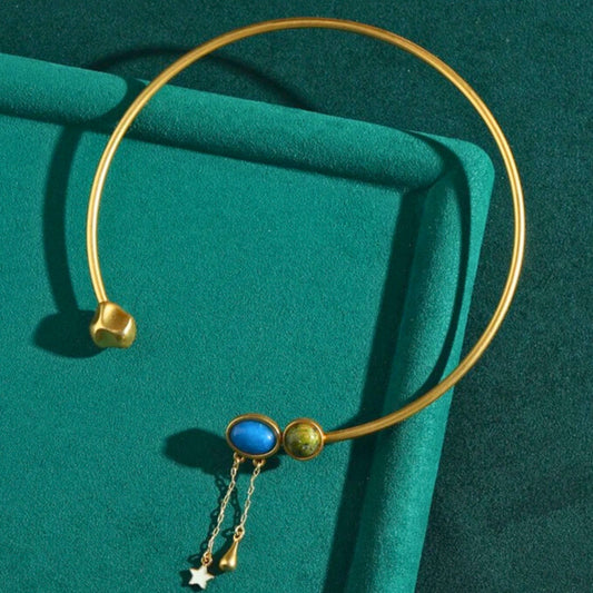 Avelora™ Vintage Blue Stone & Gold Leaf Necklace