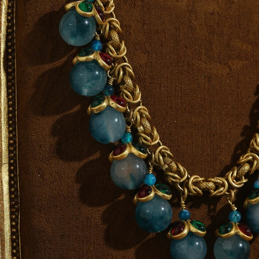 Celestia™ Vintage Blue Glass Stone Tassel Necklace