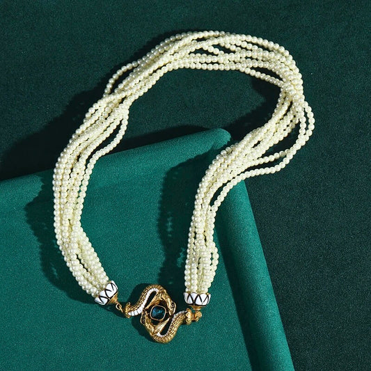 Lunavine™ Antique Gold Snake Pendant Pearl Necklace