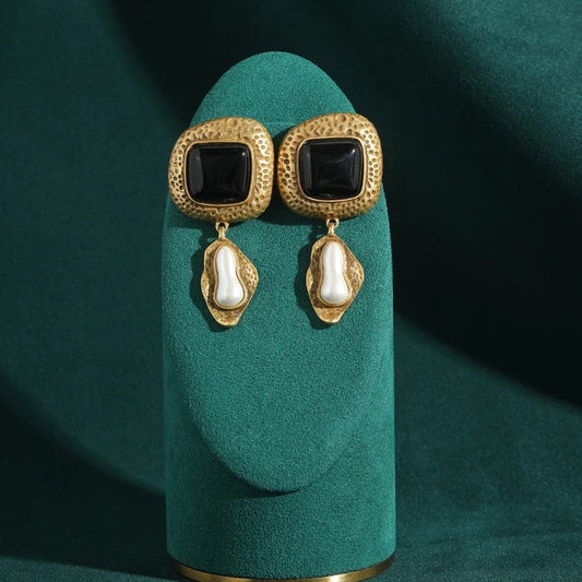 Elleinore™ Vintage Black Agate Pearl Drop Earrings