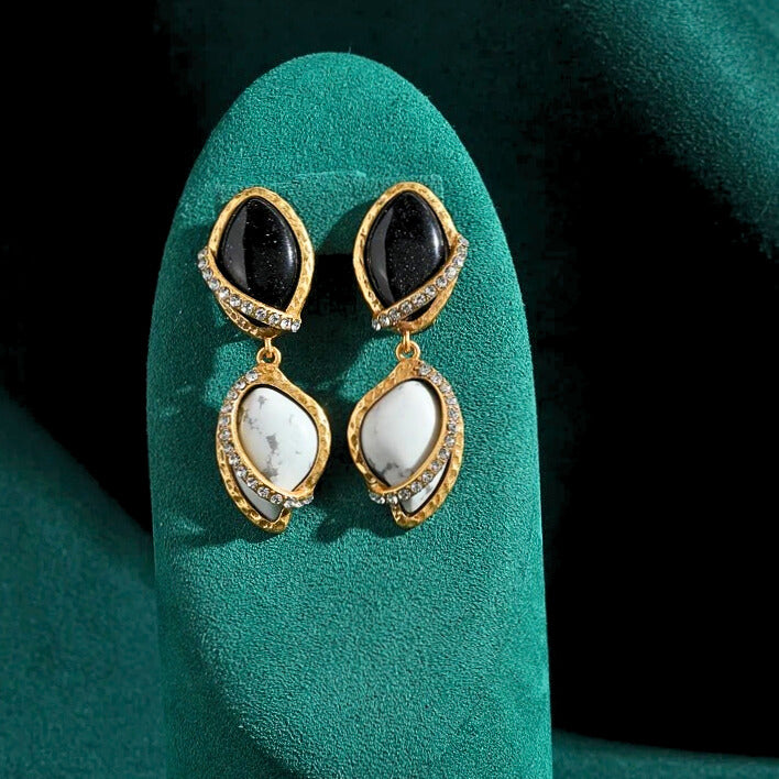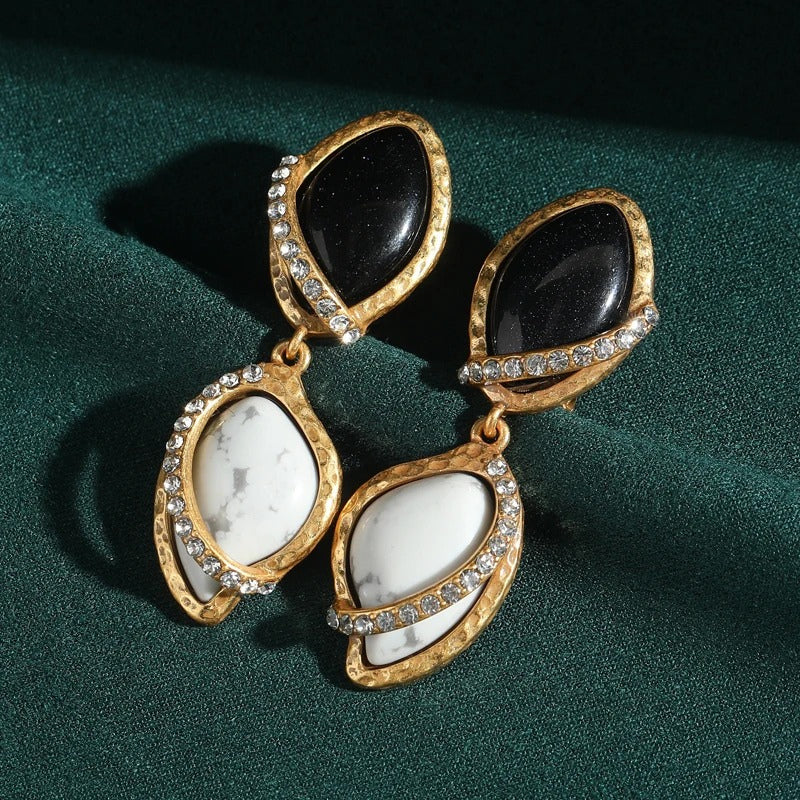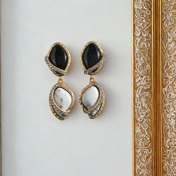 Arvani™ Vintage Black & White Stone Drop Earrings