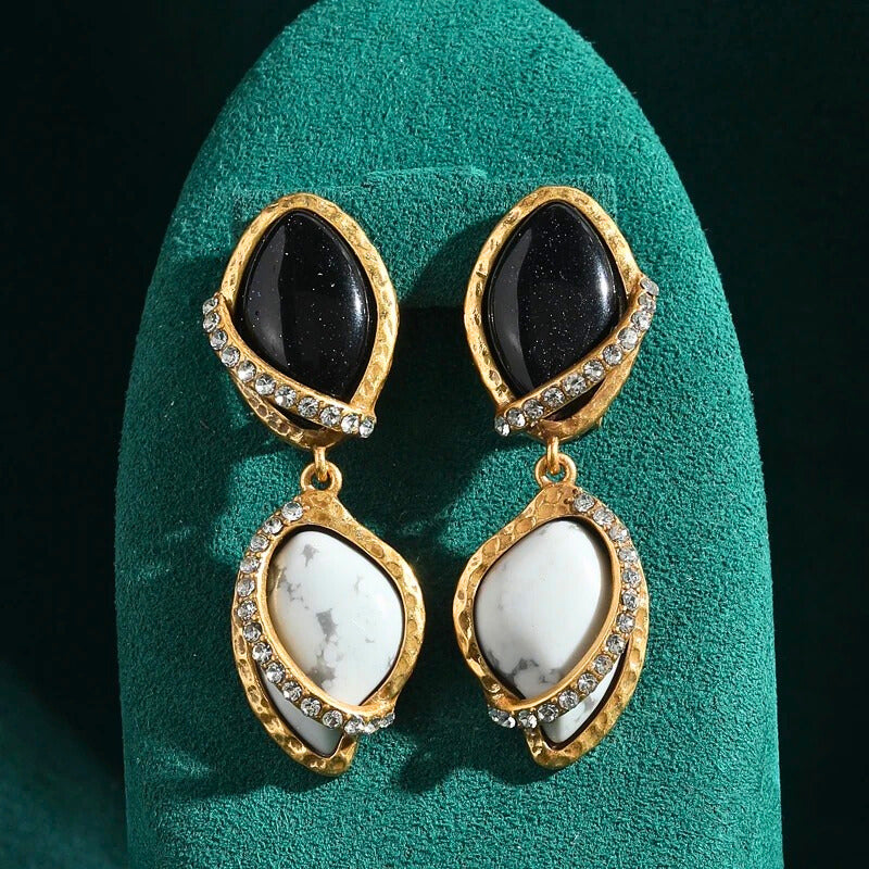 Arvani™ Vintage Black & White Stone Drop Earrings blend antique gold tones with natural stones for a striking statement look—perfect for elegant occasions, cultural flair, or bold everyday style.