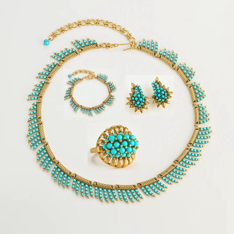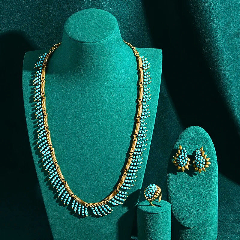 Avelora™ Vintage Necklace Set features striking blue stone beads, gold-toned leaf accents, and retro boho charm—crafted for women who love timeless elegance with a luxurious, earthy touch.
