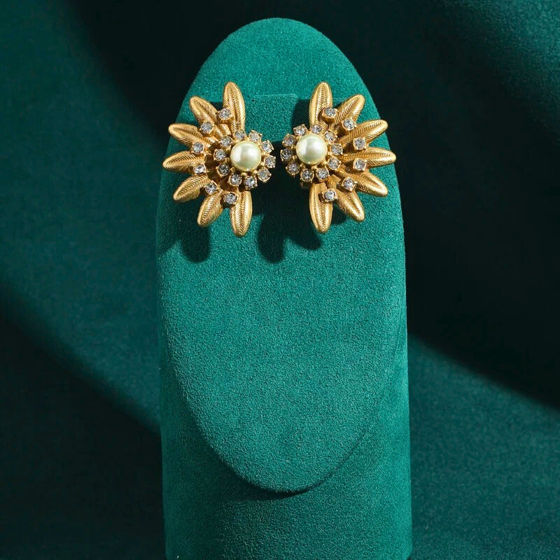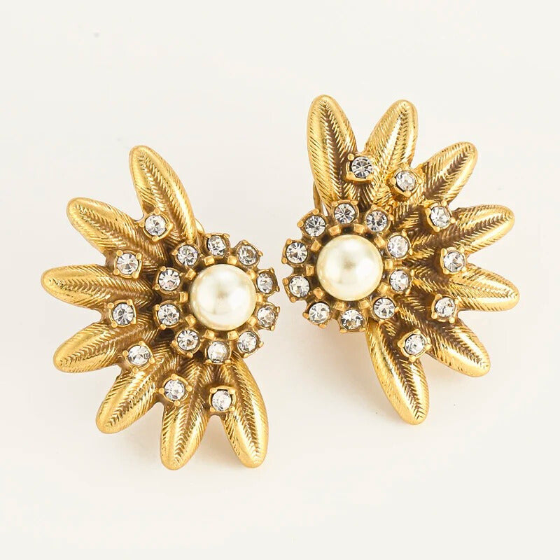 Belaisy™ Vintage Half-Daisy Pearl Stud Earrings