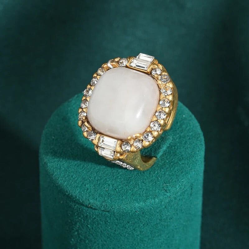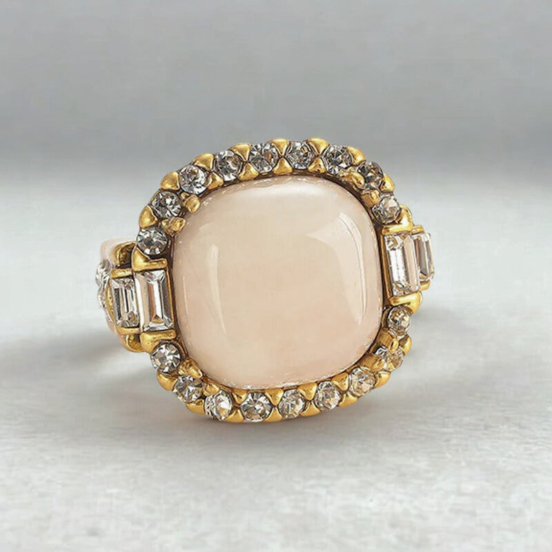 Bellure™ Vintage Pink Opal Square Ring features a soft rose-hued natural stone set in a retro square design with rhinestone accents—blending French elegance and antique charm for timeless sophistication.