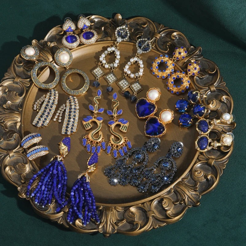 Elodie™ Vintage Blue Zircon Gold Stud Earrings exude elegance and luxury, featuring radiant blue zircon stones surrounded by sparkling rhinestones in a refined gold-tone finish. Designed with premium craftsmanship, these high-quality earrings are perfect for women who love timeless, sophisticated jewelry. Ideal for weddings, parties, or elegant occasions, they combine vintage charm, designer style, and lasting brilliance, adding a touch of glamour and refinement to any outfit.
