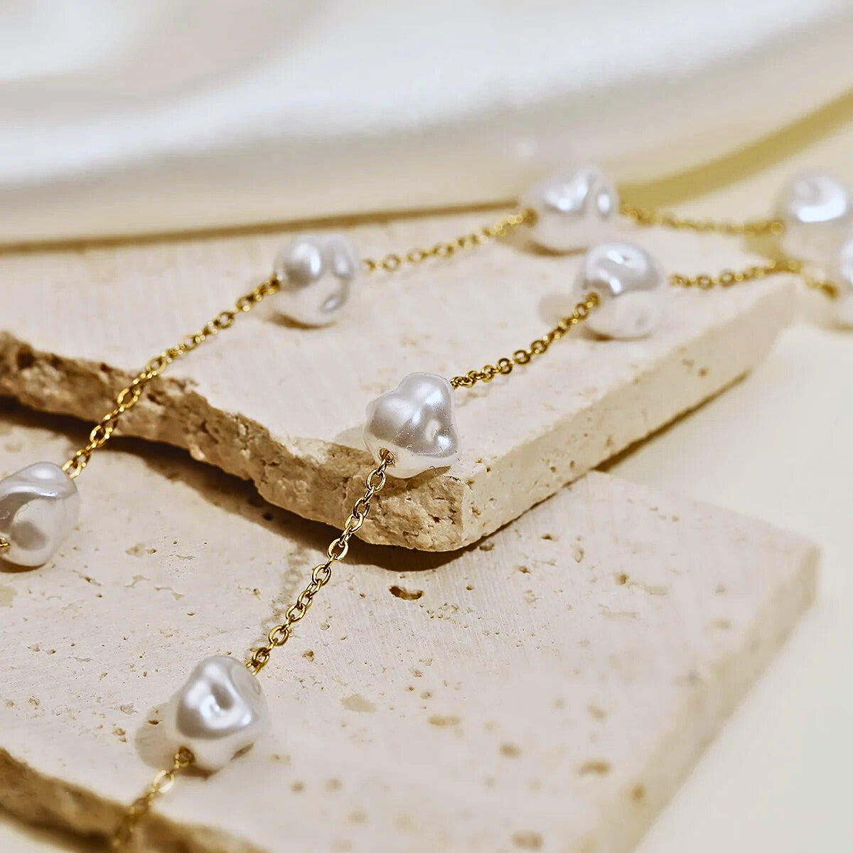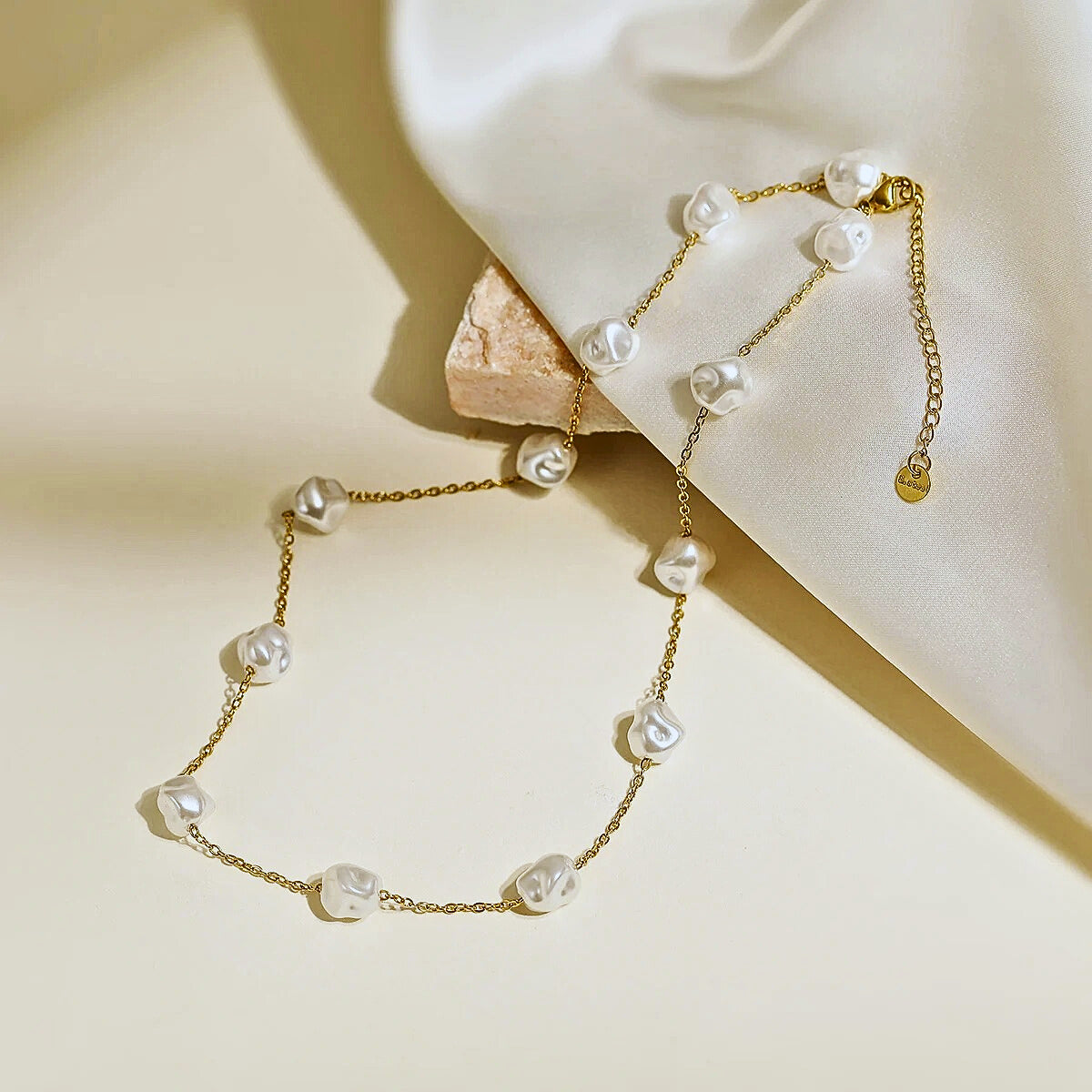 Gildora™ Elegant Gold Stainless Steel Pearl Necklace