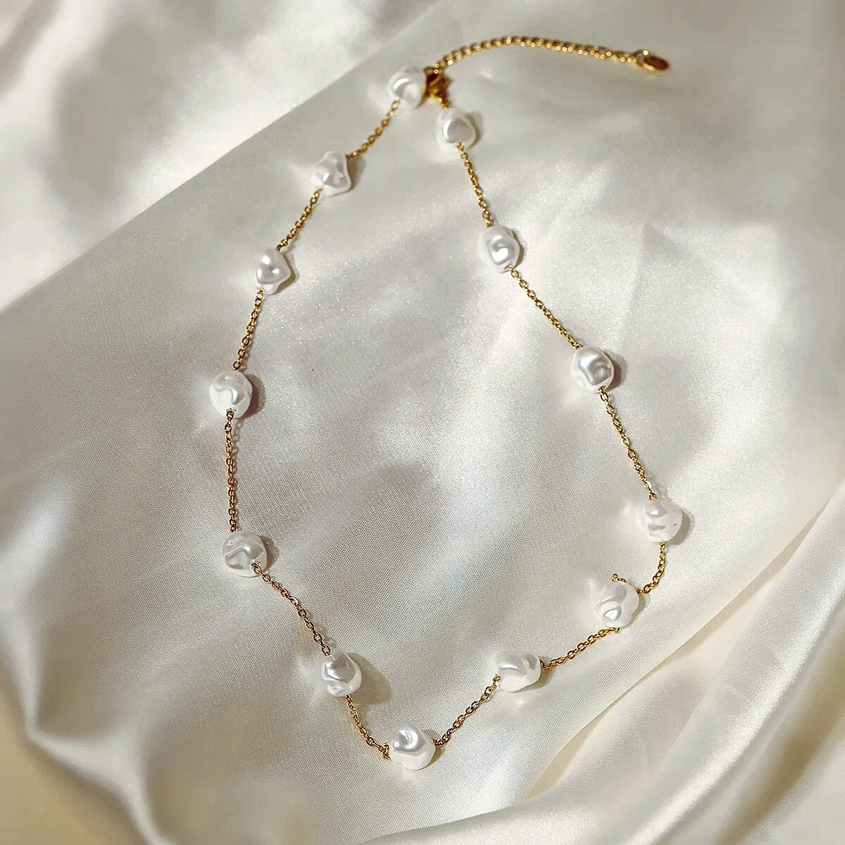 Gildora™ Elegant Gold Stainless Steel Pearl Necklace combines timeless pearl elegance with modern gold-tone stainless steel—perfect for weddings or sophisticated daily wear with a touch of refined luxury.