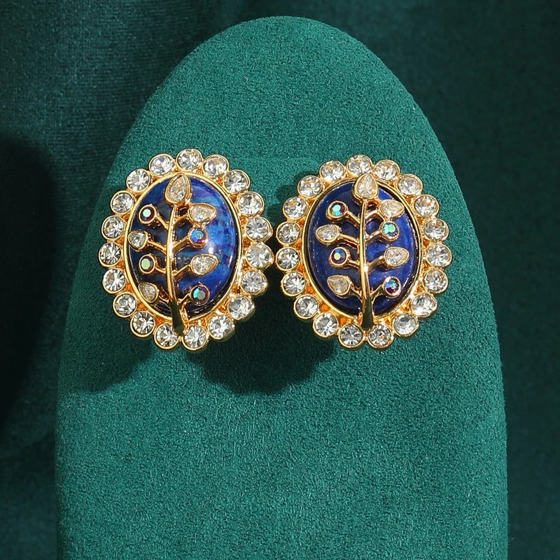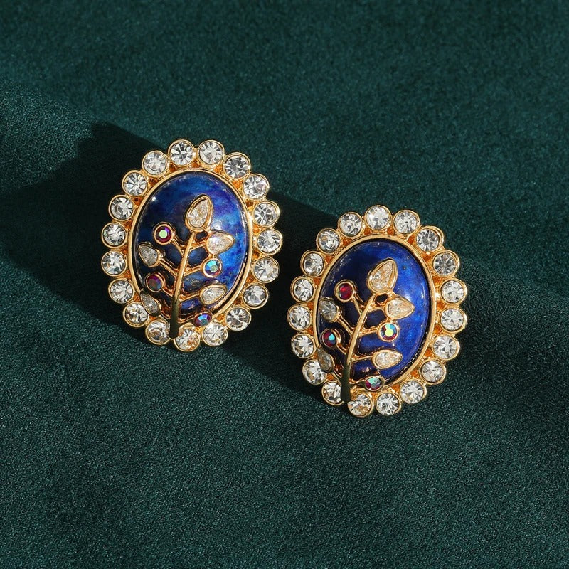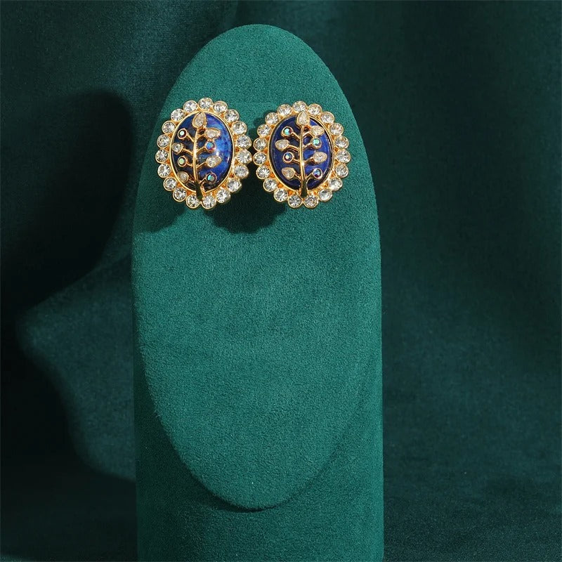 Giralyn™ Vintage Blue Oval Leaf Stud Earrings showcase timeless elegance with a captivating oval blue natural stone framed by delicate leaf motifs and sparkling zircon accents. Inspired by antique luxury jewelry, these high-quality stud earrings are perfect for women who appreciate vintage charm and sophisticated design. Durable, lightweight, and versatile, they elevate any outfit—ideal for weddings, parties, or daily wear—adding sparkle, refinement, and a touch of nature-inspired beauty to every jewelry collection.