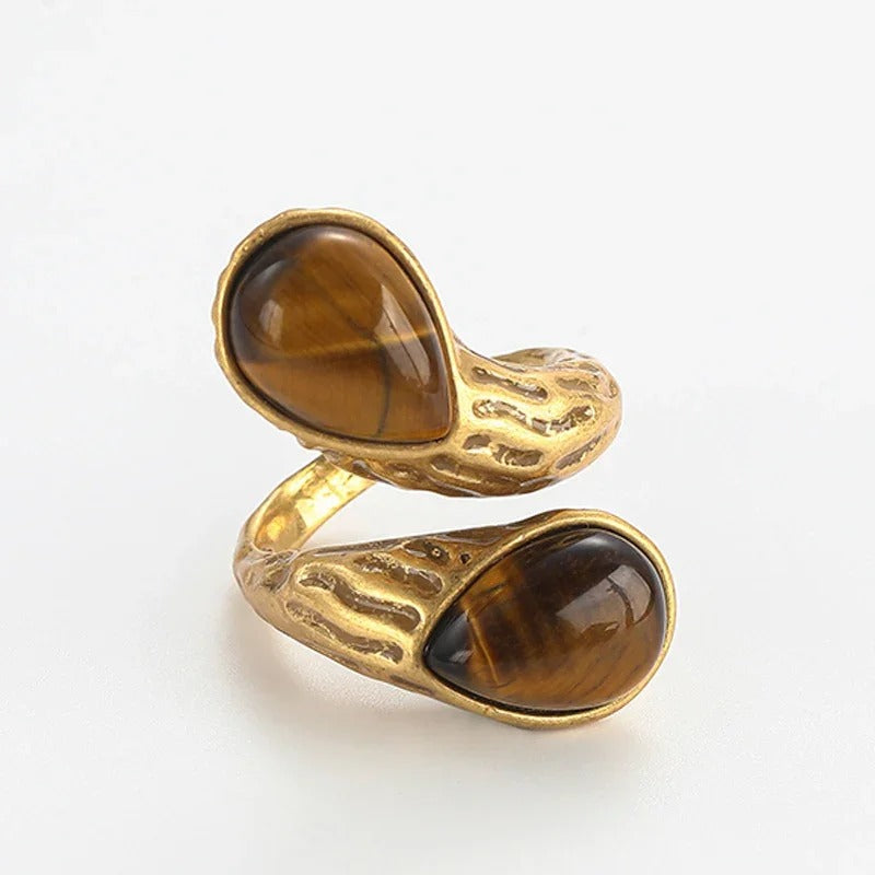 Jovelle™ Vintage Tiger Eye Teardrop Adjustable Ring