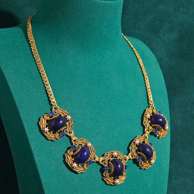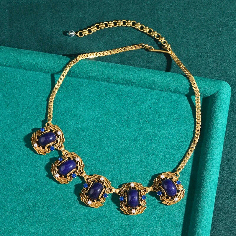 Olivara™ Vintage Bohemian Blue Stone Choker Necklace combines gothic charm with boho elegance. Featuring a square-cut natural blue stone, antique gold finish, and intricate floral engravings, this statement choker adds timeless appeal to any outfit. Perfect for women who love retro fashion, festival accessories, or baroque-style jewelry. A must-have designer piece for special occasions, weddings, or as a unique gift in top vintage jewelry trends.