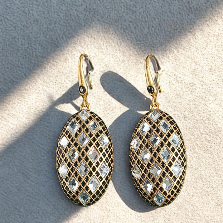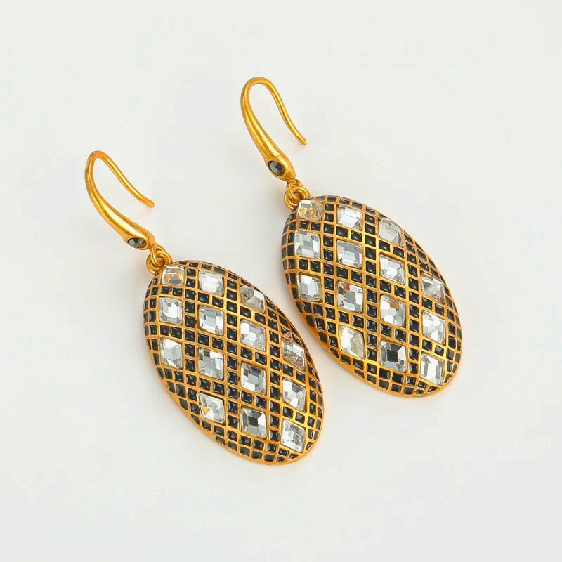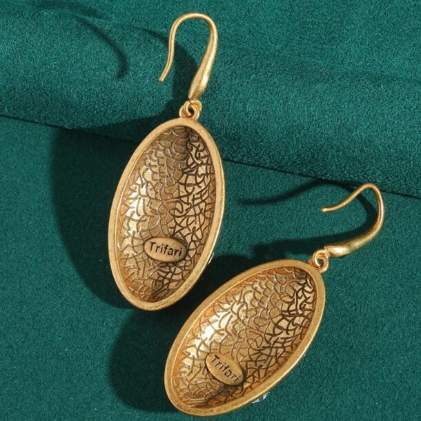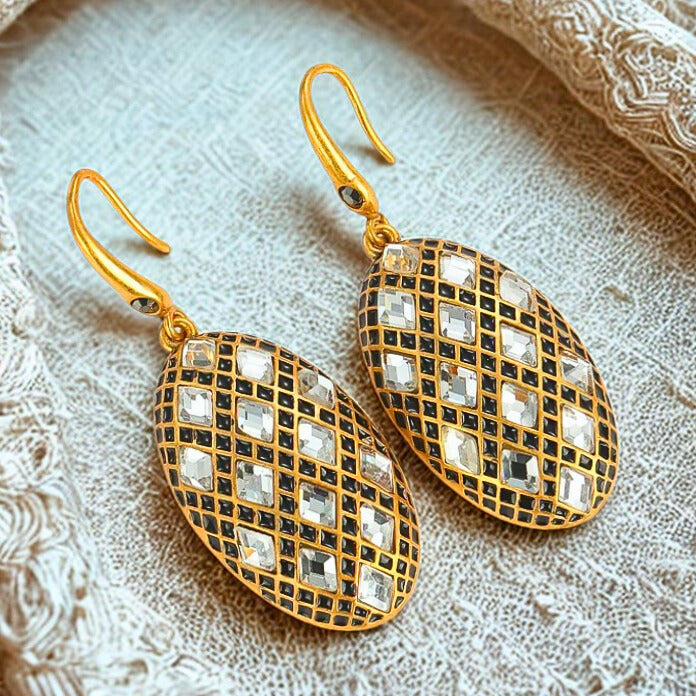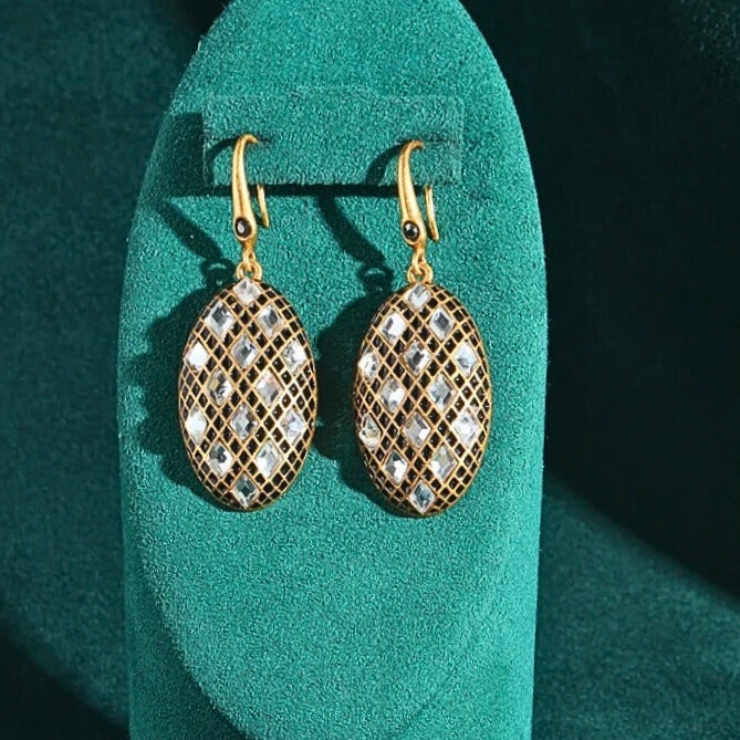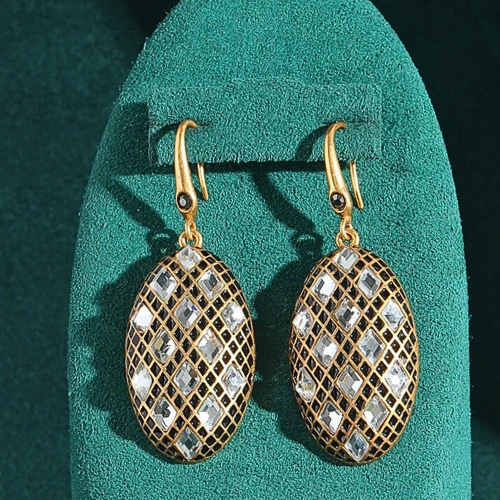 Olivia™ Vintage Olive Drop Earrings exude timeless elegance with a designer oval silhouette, shimmering black and white zircons, and antique gold finish—perfect for weddings, evening wear, or luxury styling.