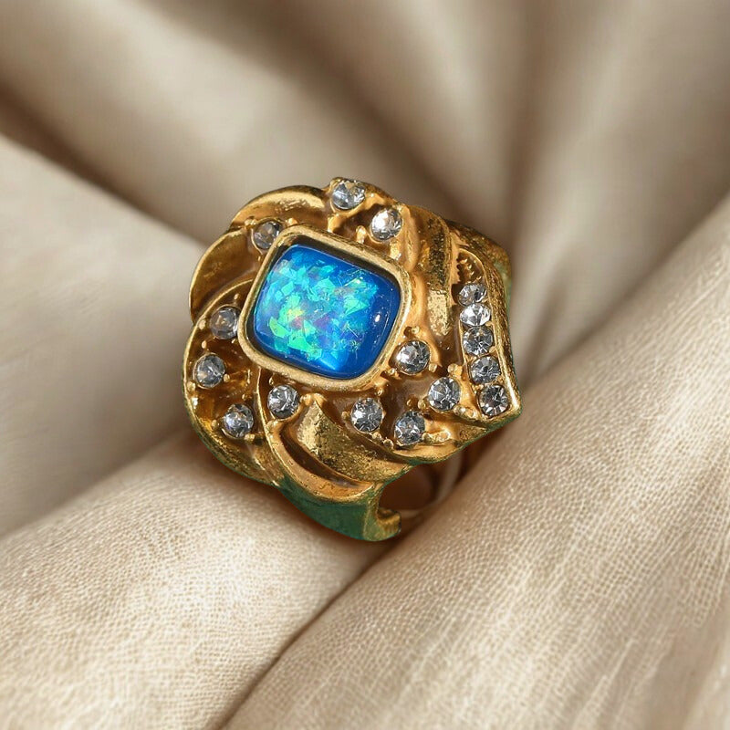 Ophirelle™ Dopamine Blue Shell Ring – Vintage-Inspired Luxury Statement Jewelry